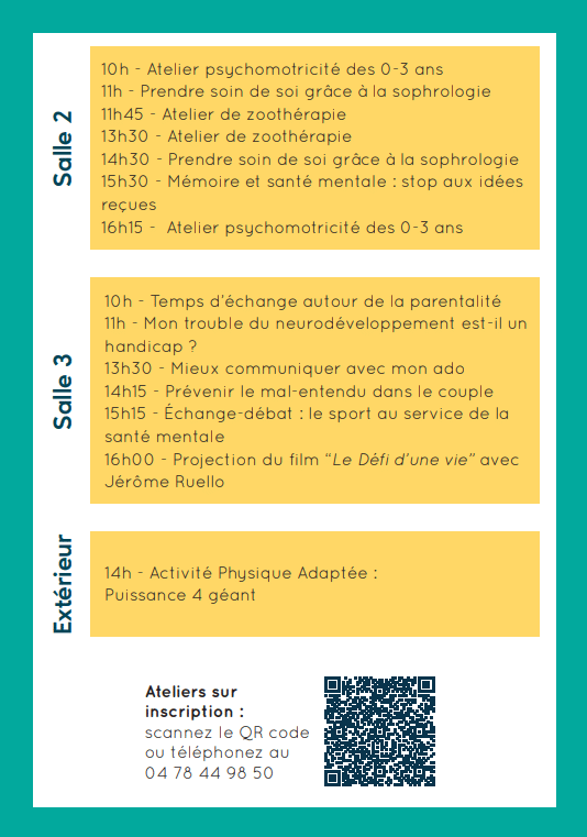 - Echange-débat : “Le sport au service de la santé mentale” avec le Dr Vivien Reynaud et Christophe Turban (APA).