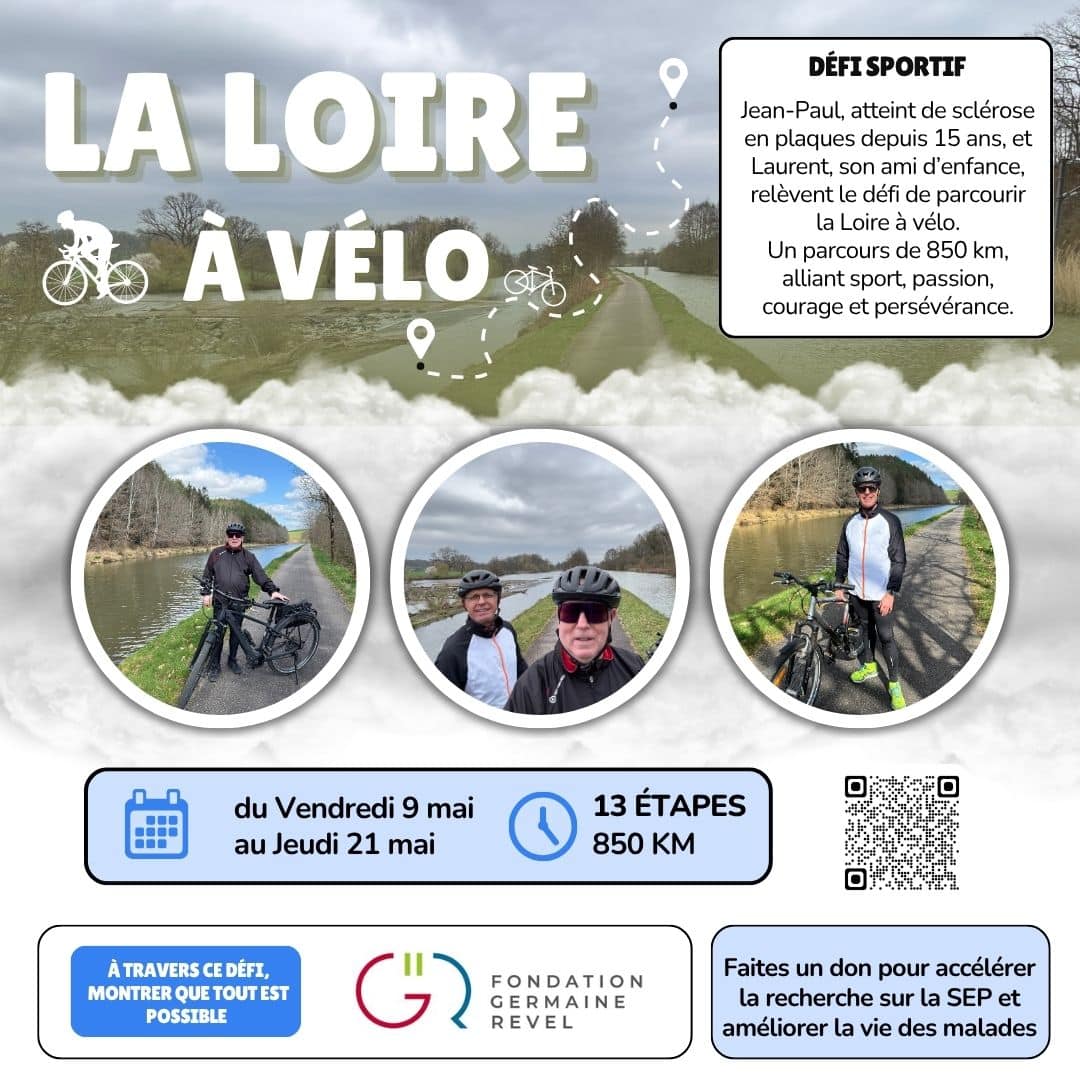 Du vendredi 9 mai au jeudi 21 mai, Jean-Paul Imblot, atteint de sclérose en plaques depuis 15 ans, et son ami d’enfance Laurent vont relever un formidable défi sportif : parcourir 850 kilomètres à vélo le long de la Loire.