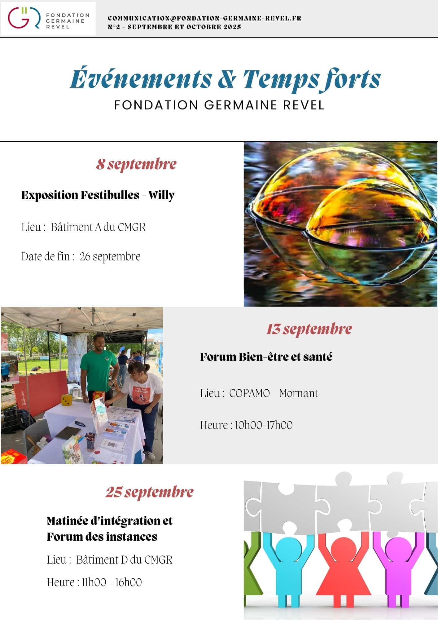 Vous y trouverez un aperçu des événements à venir, ainsi que les temps forts de la Fondation Germaine REVEL.