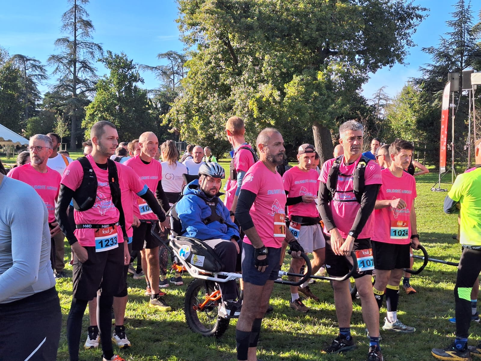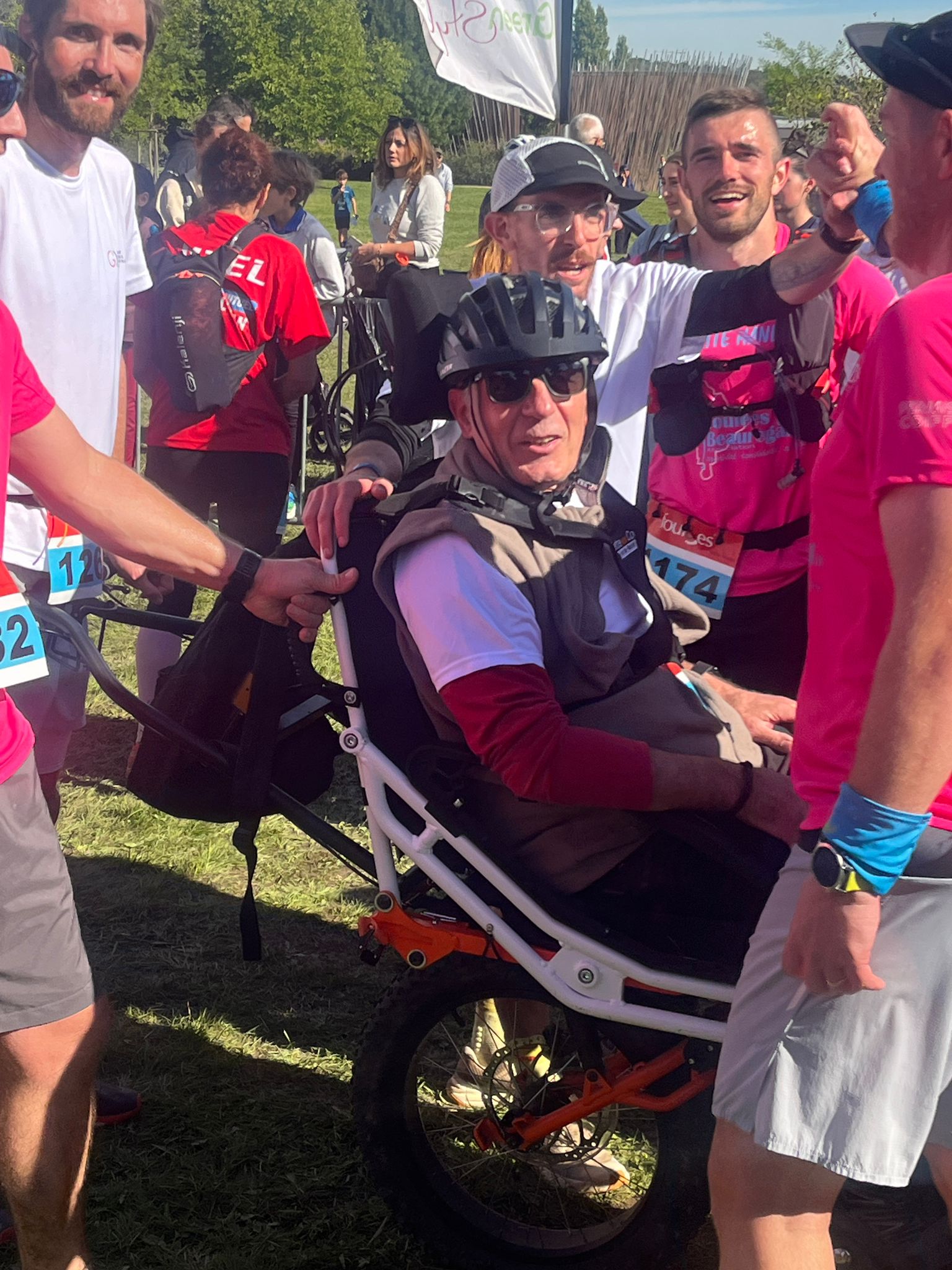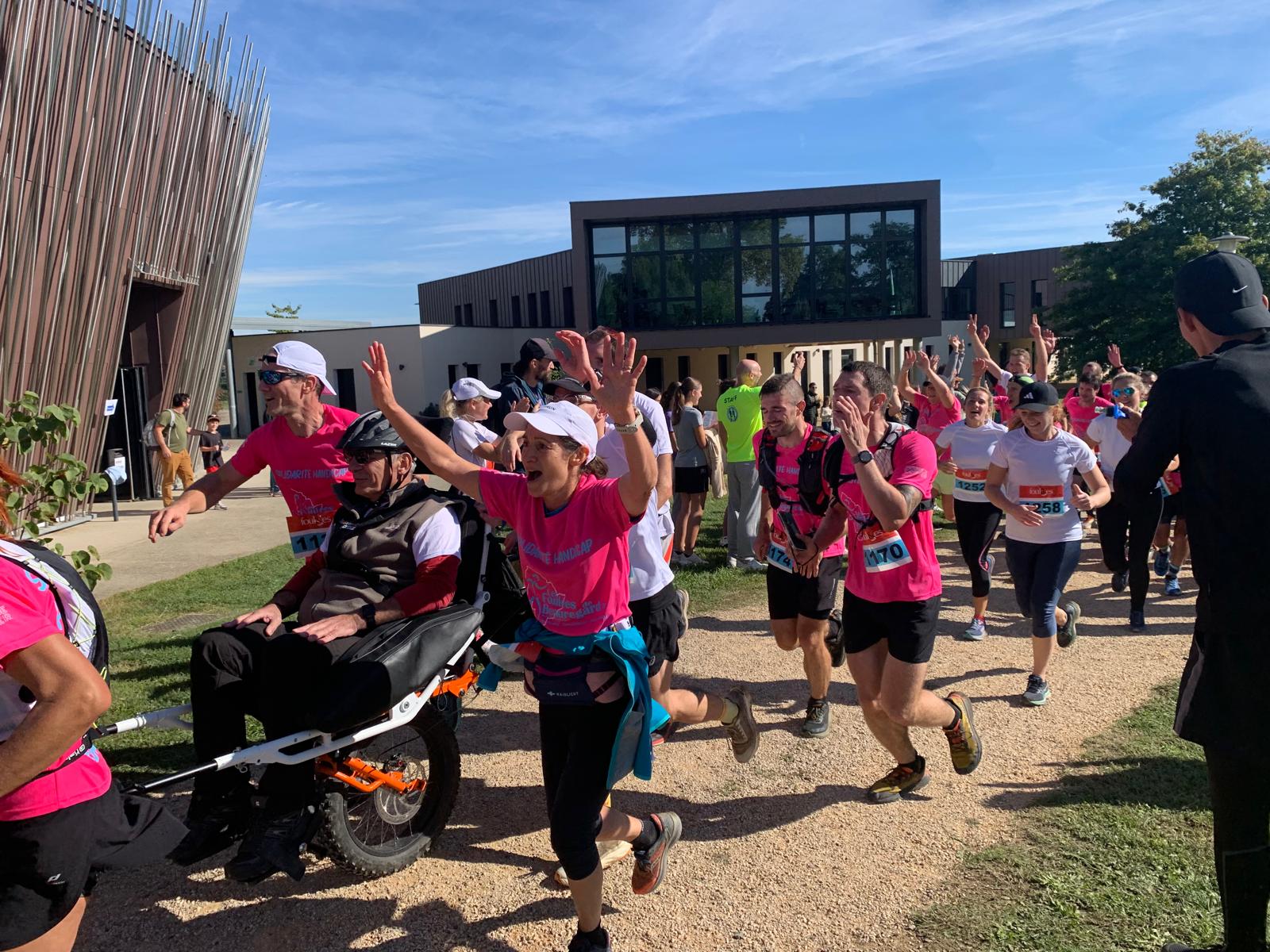 🚶♂️ 5 joëlettes ont pris le départ sur les parcours de 8 km et 14 km, accompagnées par les salariés, administrateurs, patients, familles, sympathisants et associations partenaires : Atos et les Foulées de Beauregard.