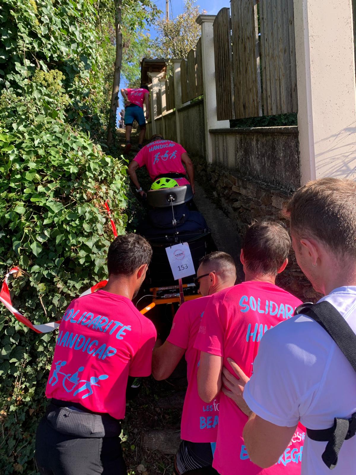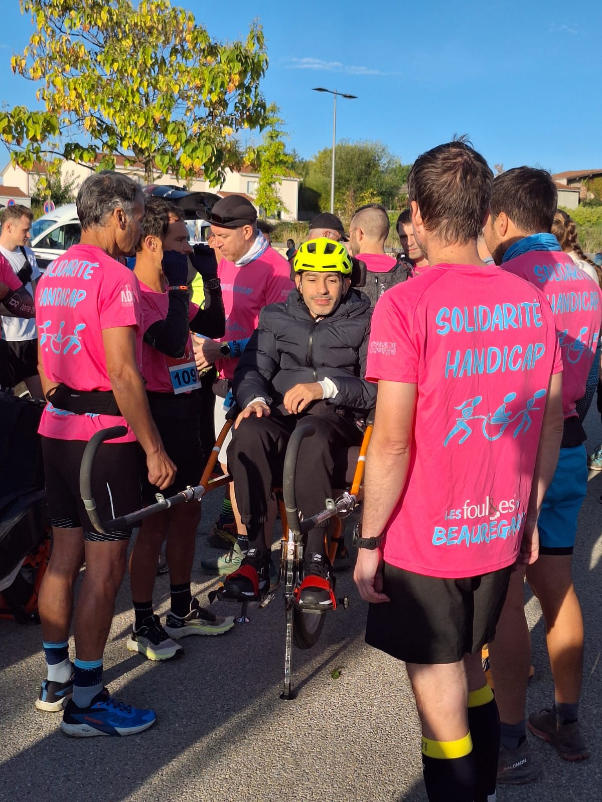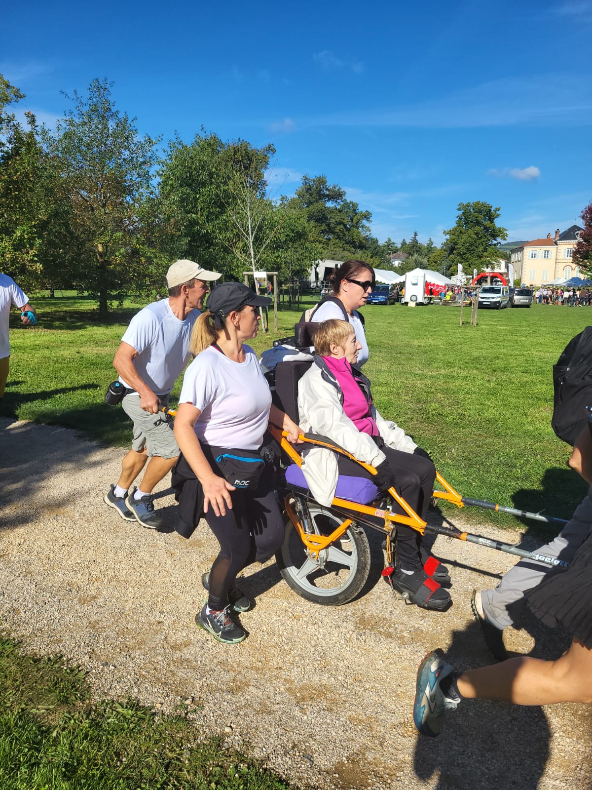 🚶♂️ 5 joëlettes ont pris le départ sur les parcours de 8 km et 14 km, accompagnées par les salariés, administrateurs, patients, familles, sympathisants et associations partenaires : Atos et les Foulées de Beauregard.